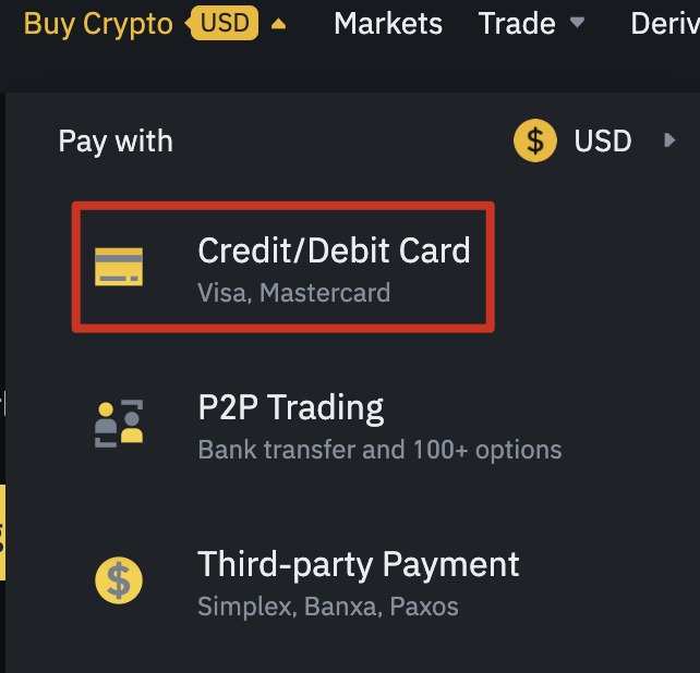 如果尚未准备交换QUICK的加密货币,可以使用币安主页的[一键买币]选项卡中的[信用卡/借记卡]服务。敬请阅读《如何使用信用卡或借记卡在币安购买比特币》指南,了解详情。