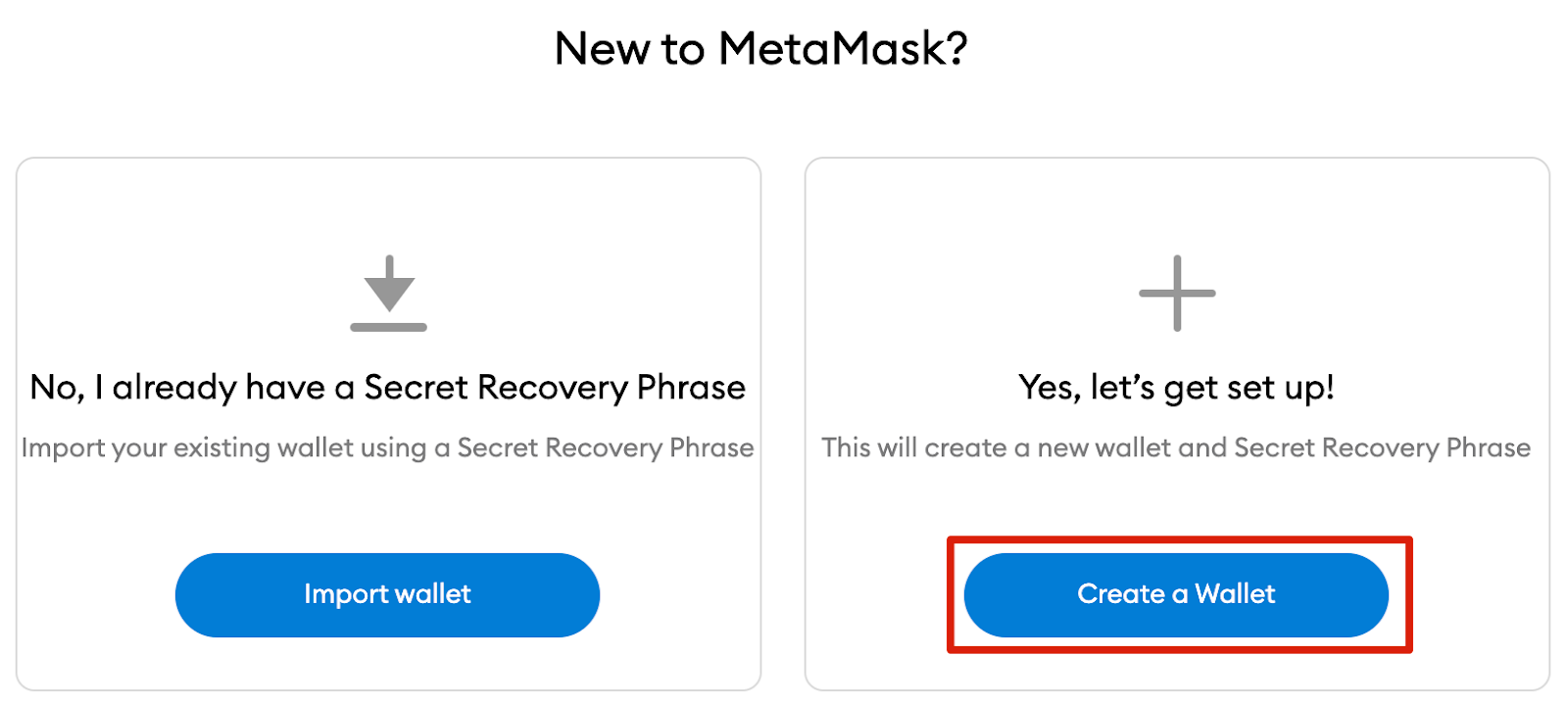 如果您在创建新钱包,请单击[创建钱包]按钮。也可通过[导入钱包]选项,使用助记词导入旧钱包。