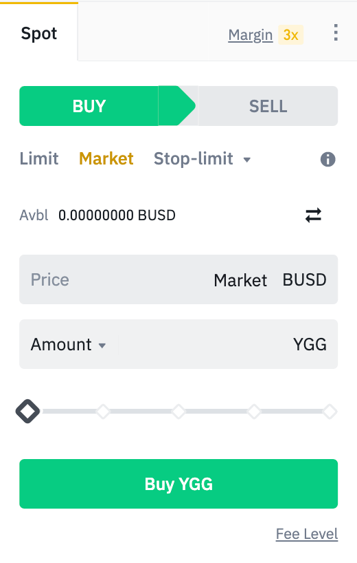 3. 前往右侧的[现货]框,输入欲购买的 YGG 币数量。在本示例中,我们将使用市价单。点击[买入 YGG 币]以确认订单,已买入的 YGG 币将计入您的现货钱包。