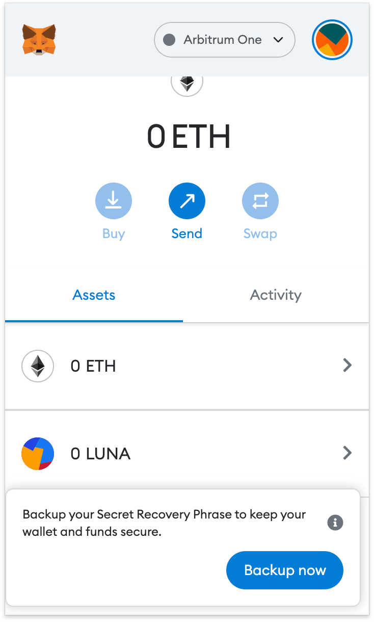 在MetaMask中设置好Arbitrum主网后,则可免费开始发送加密货币、收集NFT和使用DeFiDApp智能合约。您甚至可以在插件中交换代币。然而,为了支付交易成本,请确保钱包中存有以太币。通过使用Arbitrum Bridge,便可获得以太坊主网的以太币。