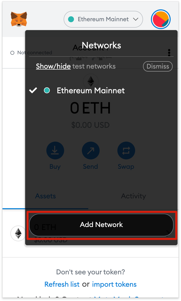 MetaMask是一个加密货币钱包,默认连接到以太坊主网。您可在官方MetaMask网站找到该插件和移动App。