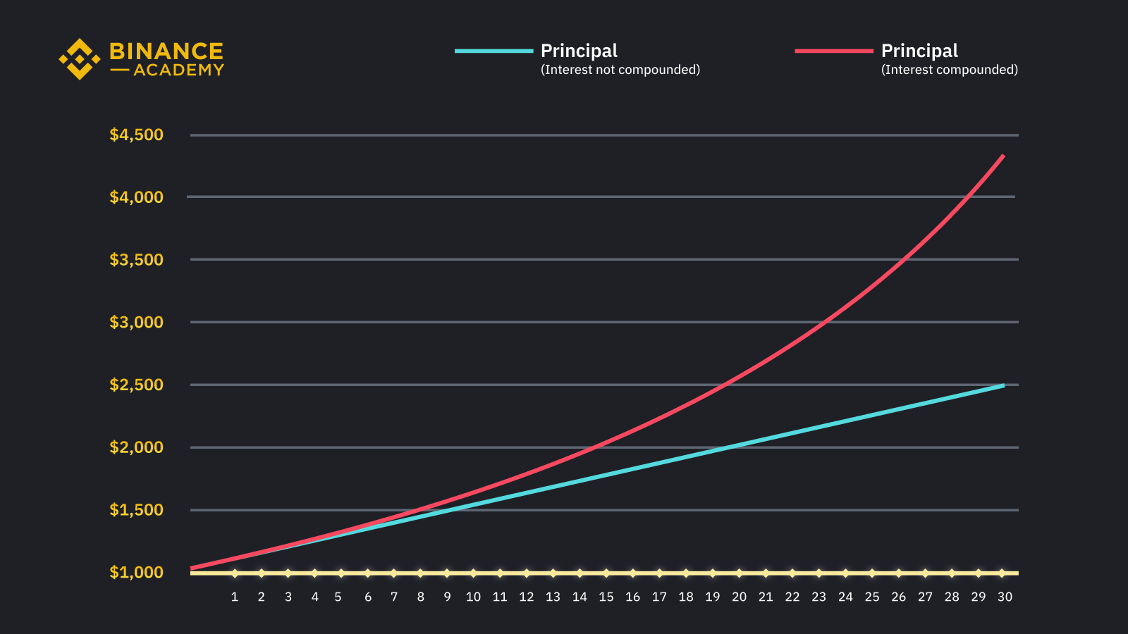 借助复利效应,您可以从相同的资金中赚取更多收益。另请注意,利息多少因复利频率而异。复利频率越高,赚取的收益越多。例如,与按月复利相比,按天复利可为您带来更多利息收益。